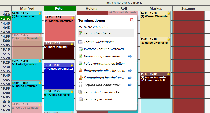 Bei Software für Zahnarztpraxen spielt auch das Look & Feel ein große Rolle. Hier finden Sie einige Screenshots zum Thema Administration und Terminierung.